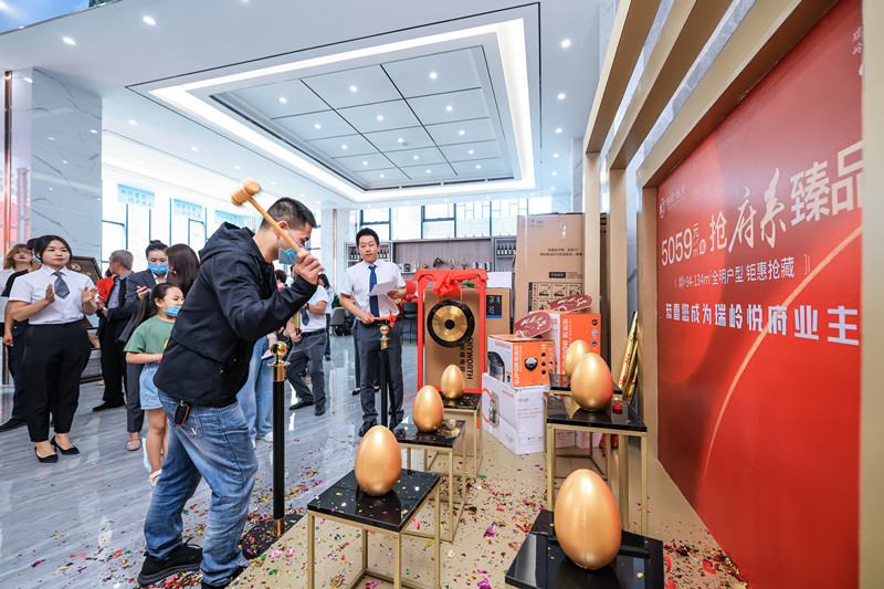 开盘必钜惠,钜惠必超值,为回馈广大业主的厚爱以及全城客户的关心与期待,此次开盘,针对认购的所有客户均可参与砸金蛋活动,赢五菱宏光mini、购房金卡、豪华家电超值惊喜,客户们各个都满载而归,脸上笑容洋溢。除此之外,现场还准备了精美伴手礼和丰盛冷餐都深受各位来宾们的喜爱。