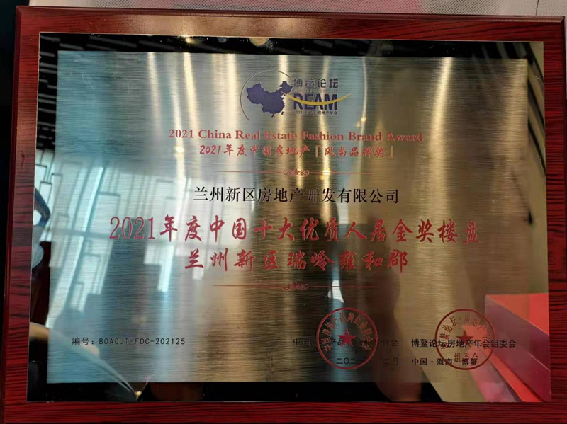 12月27日,博鳌论坛·2021(第17届)房地产年会在海南·博鳌举行,兰州新区城投集团房地产公司建设的瑞岭雍和郡项目获得“2021年度中国十大优质人居金奖楼盘”的殊荣。
