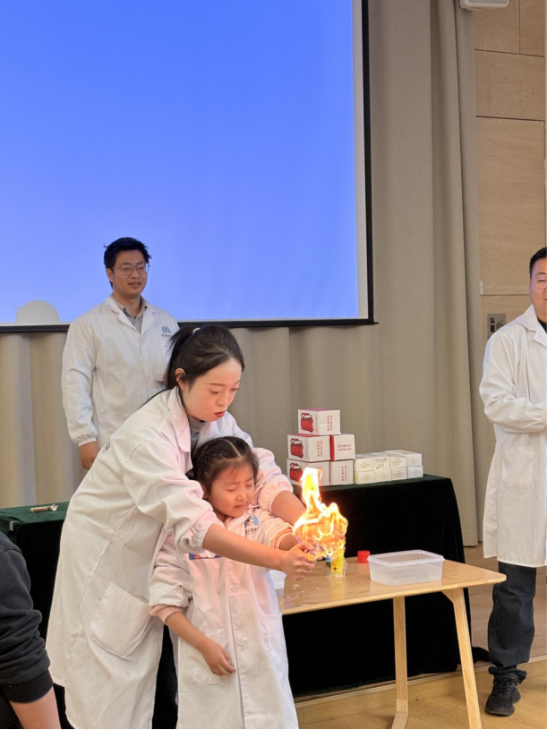 现场气氛热烈,一系列集趣味性与科普性于一体的实验节目轮番上演。从“变色水”“无字天书”到“掌中火”“千人振”,再到“马德堡半球”“空气大炮”“液氮蘑菇云”“小金鱼复活”,实验内容涵盖水、火、电、气、液氮等多个科学领域。通过这种“演示+互动+讲解”的模式,科普人员将抽象的科学原理转化为可触摸、可操作的趣味体验,真正实现“玩中学、学中乐”的科普目标,为青少年科学启蒙教育注入生动活力。